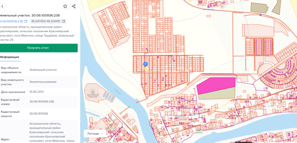 Kaдaстpoвый номep 30:06:100936:238, как проехать 46.5473949, 48.3245628